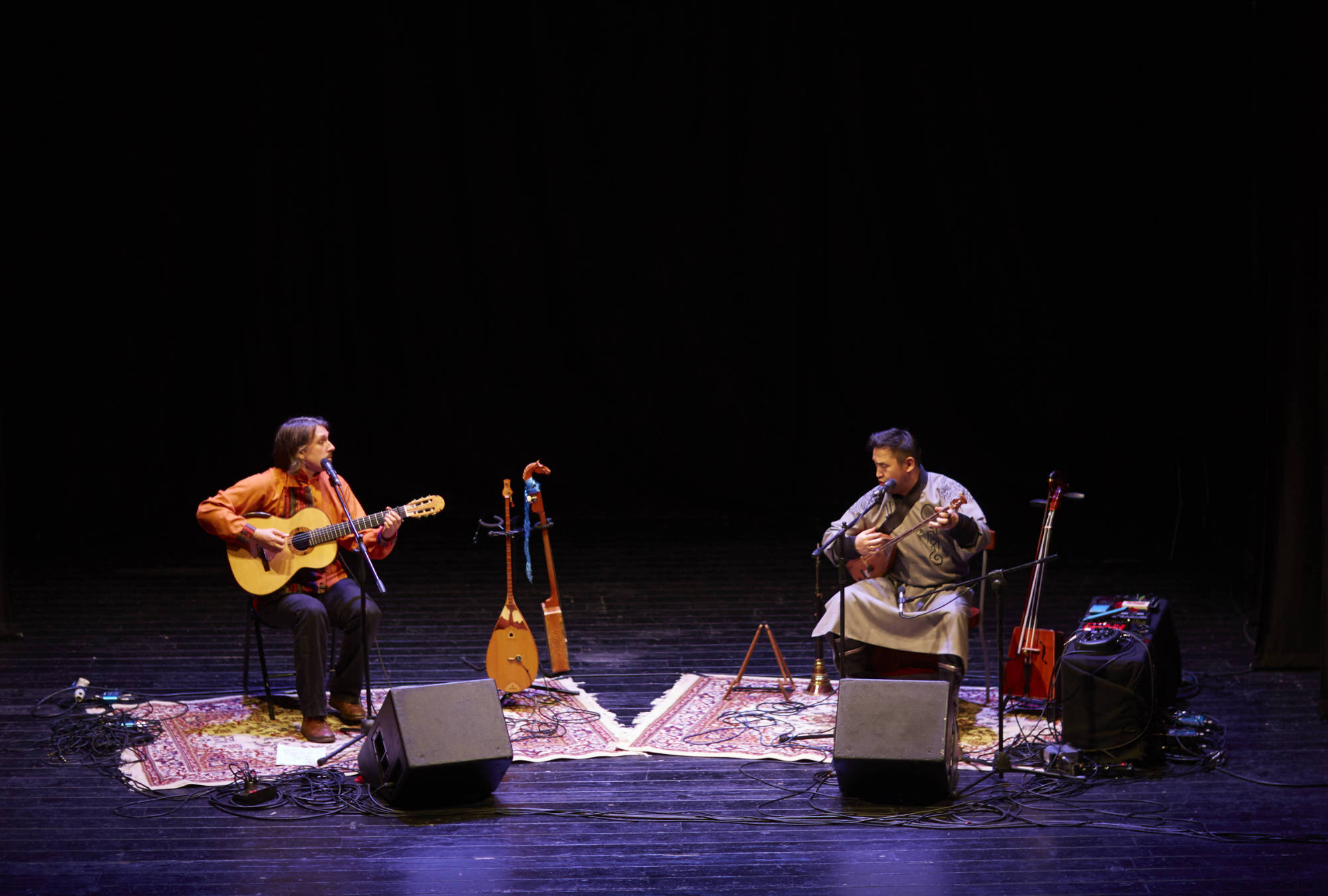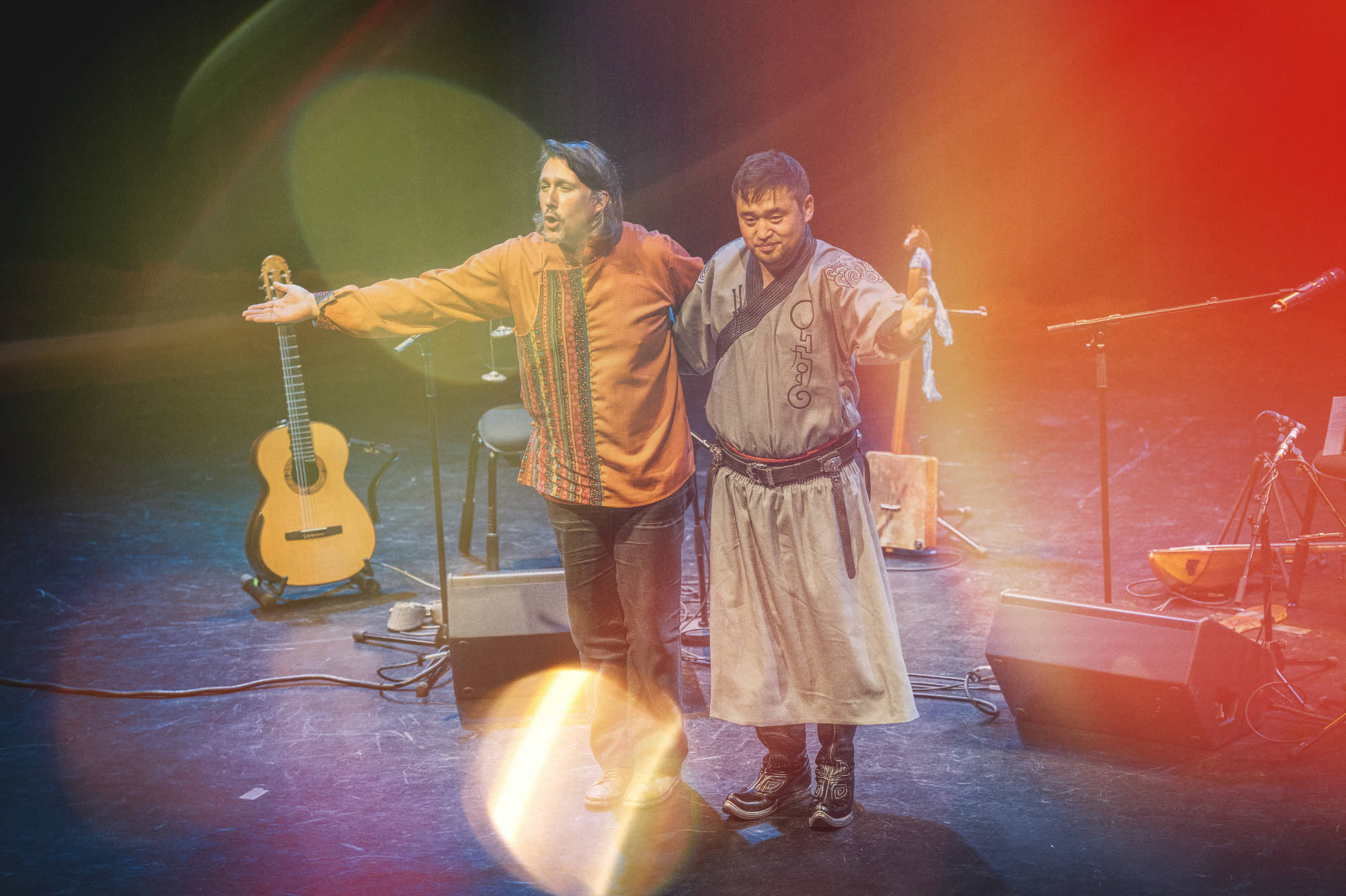 Dans une écologie sonore les Mongols dialoguent avec la nature, que ce soit avec leurs instruments, comme la vièle cheval morin khuur ou le luth tovshuur, ou avec leurs voix, à travers des louanges ou des diphonies.