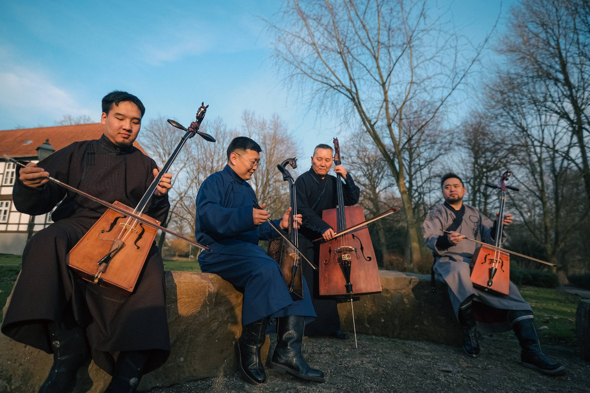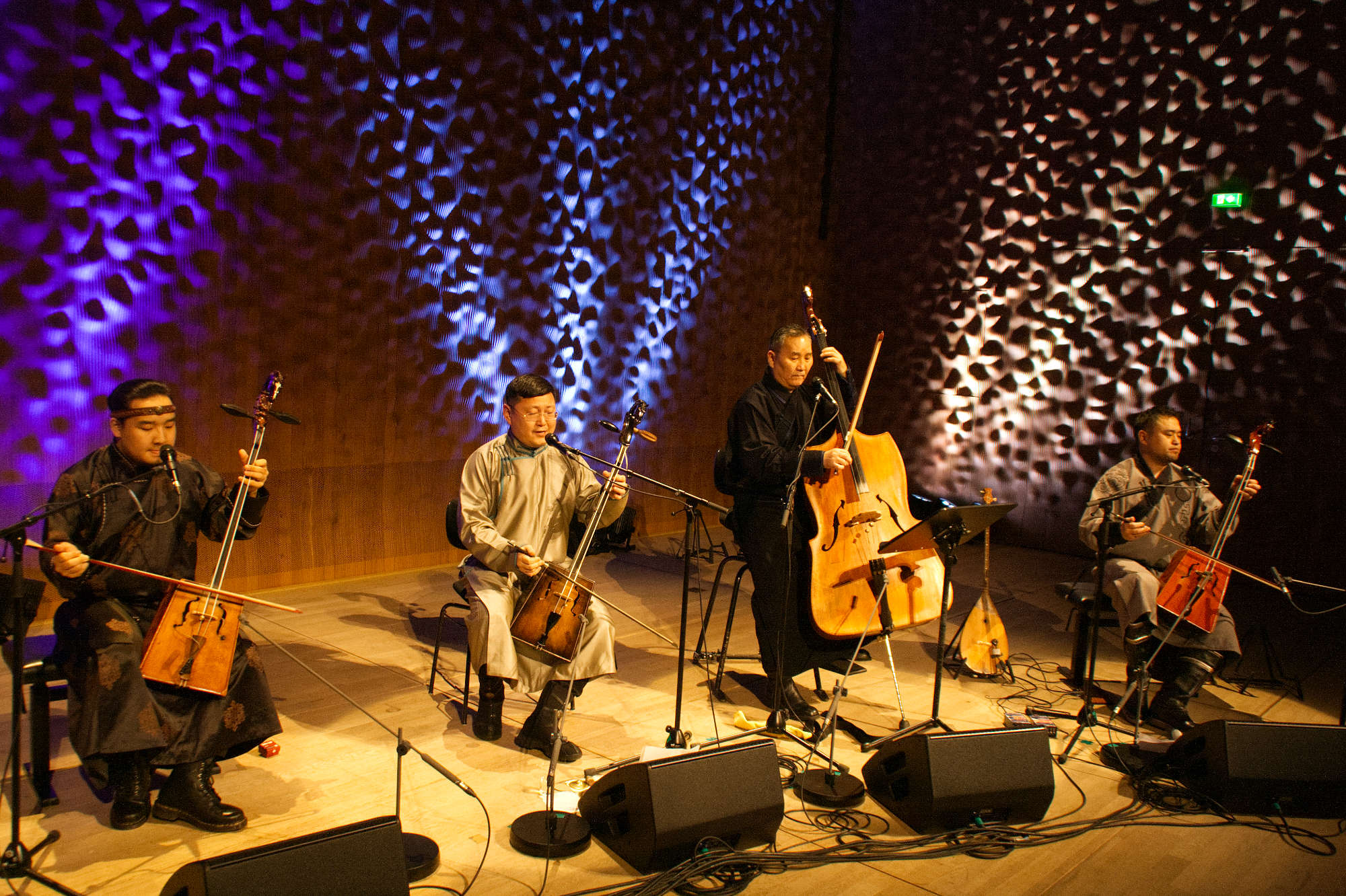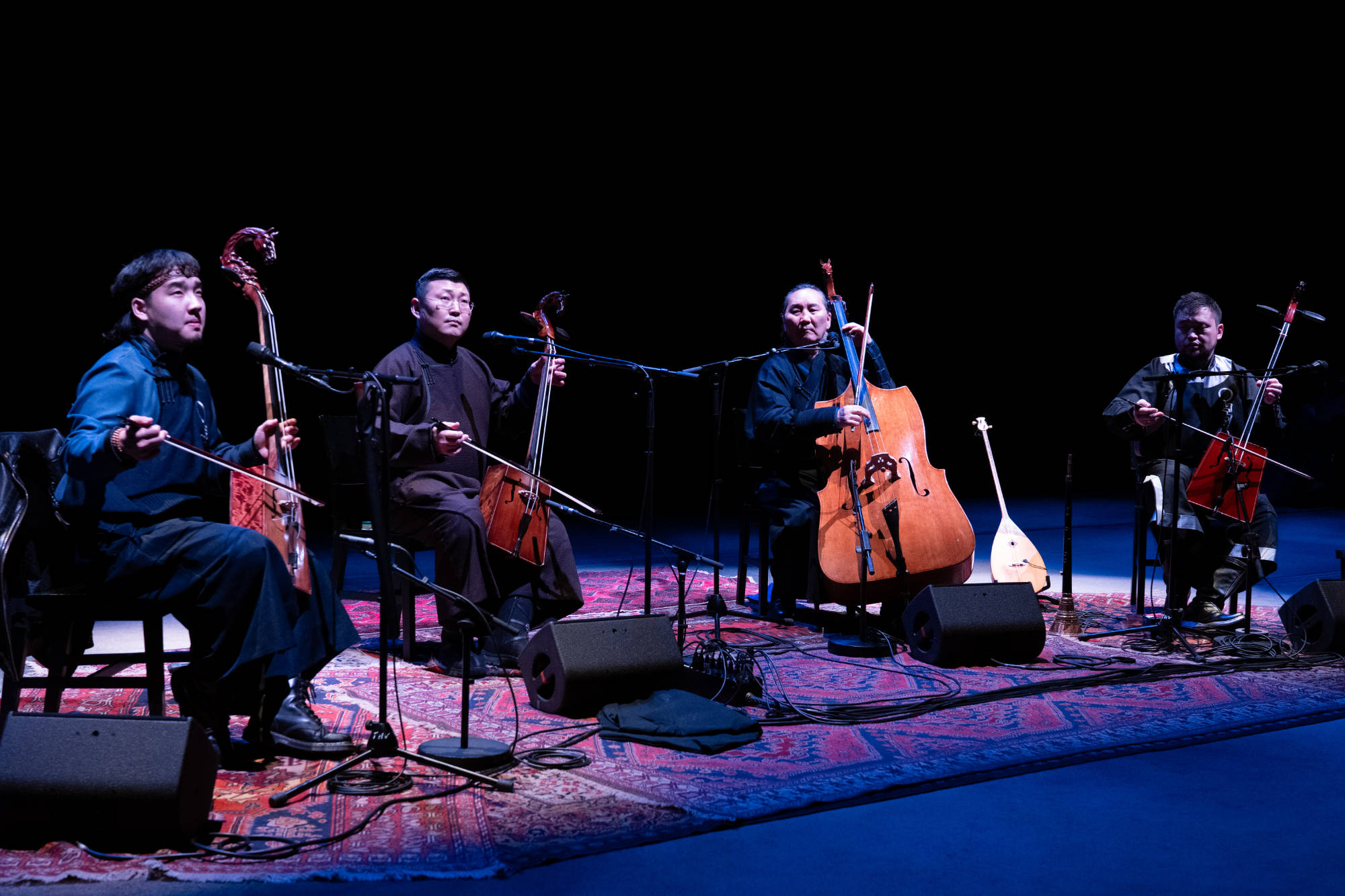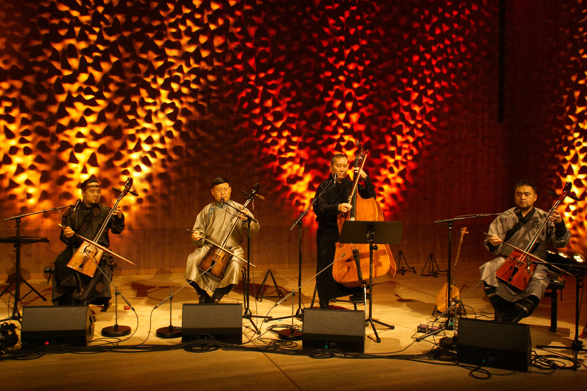 La musique de ce quatuor à cordes s’appuie sur deux éléments emblématiques de l’univers mongol : la vièle morin khuur et les fascinants chants diphoniques khöömii. L’ensemble composé de super solistes (Sedaa, Argusan, Khukh Mongol) développe un langage musical contemporain avec lequel ils interprètent le riche répertoire des chants traditionnels avec leurs propres arrangements.